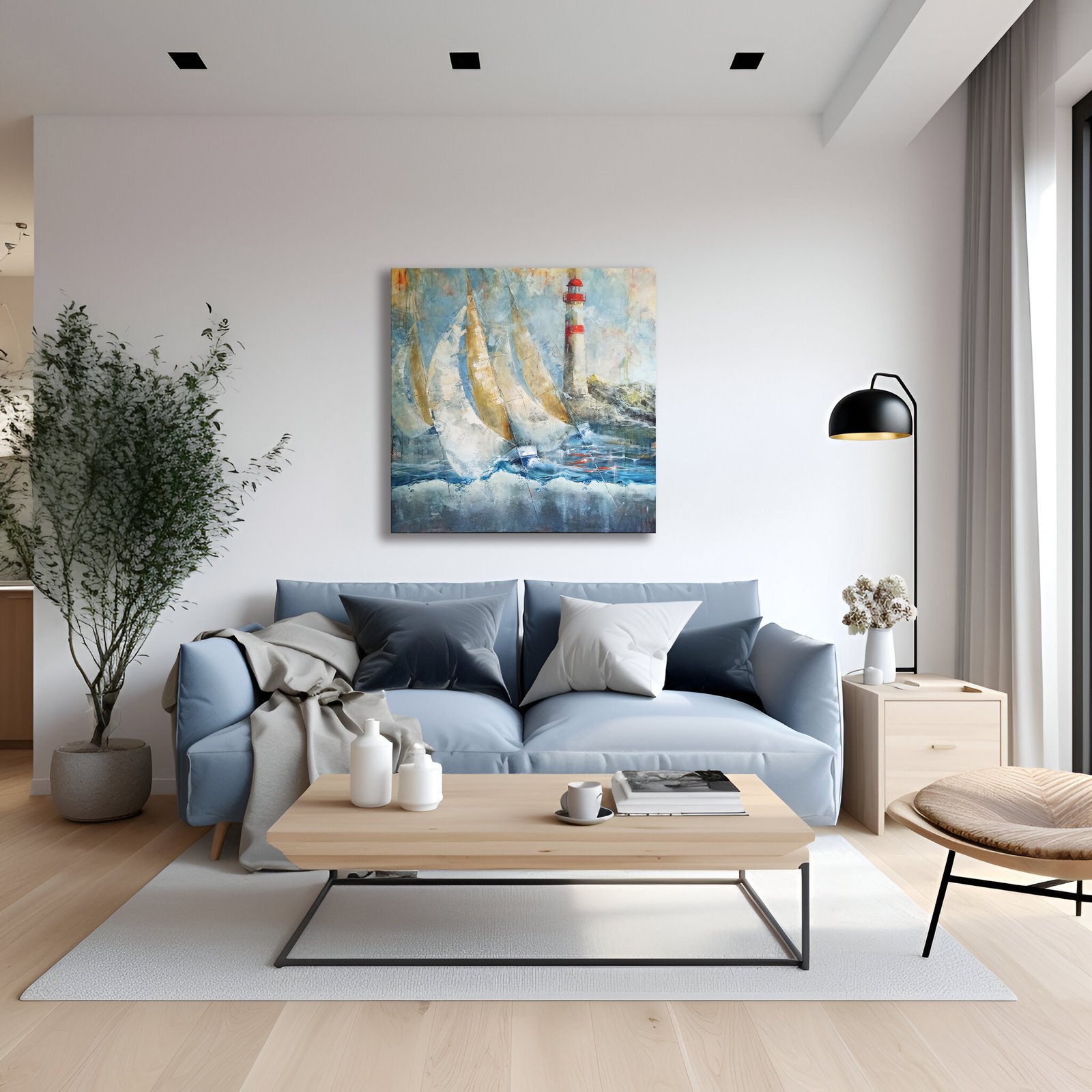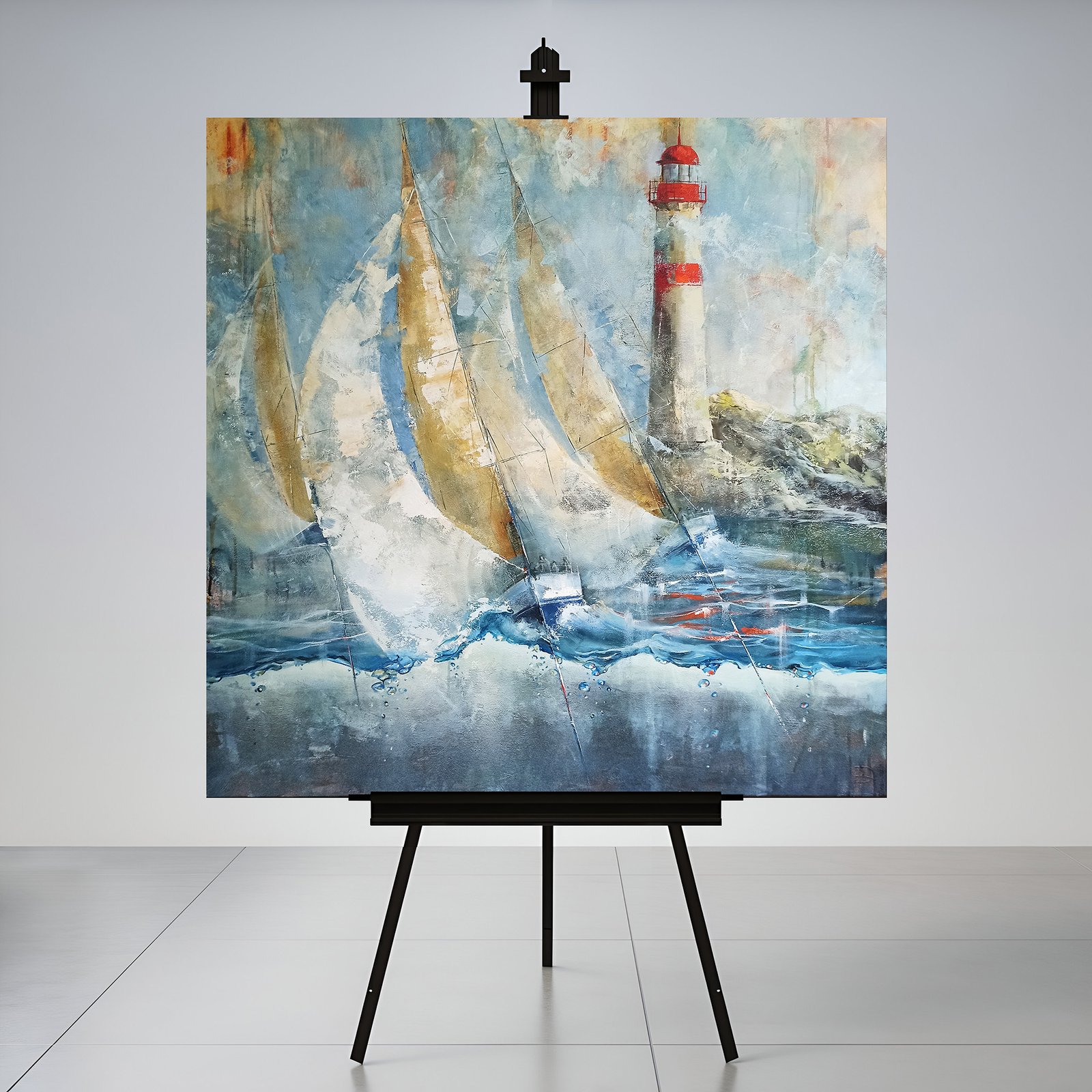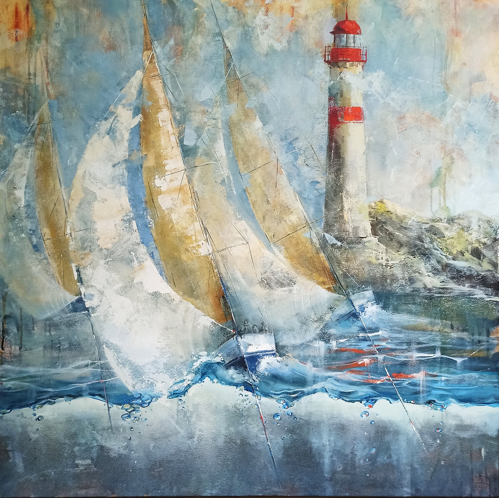 Paveikslas „GERO VĖJO!”.  Šis kūrinys puikiai tiks papuošti tiek namų, tiek ofiso interjerą. Daugiasluoksnia mišria technika, akrilas/aliejus.