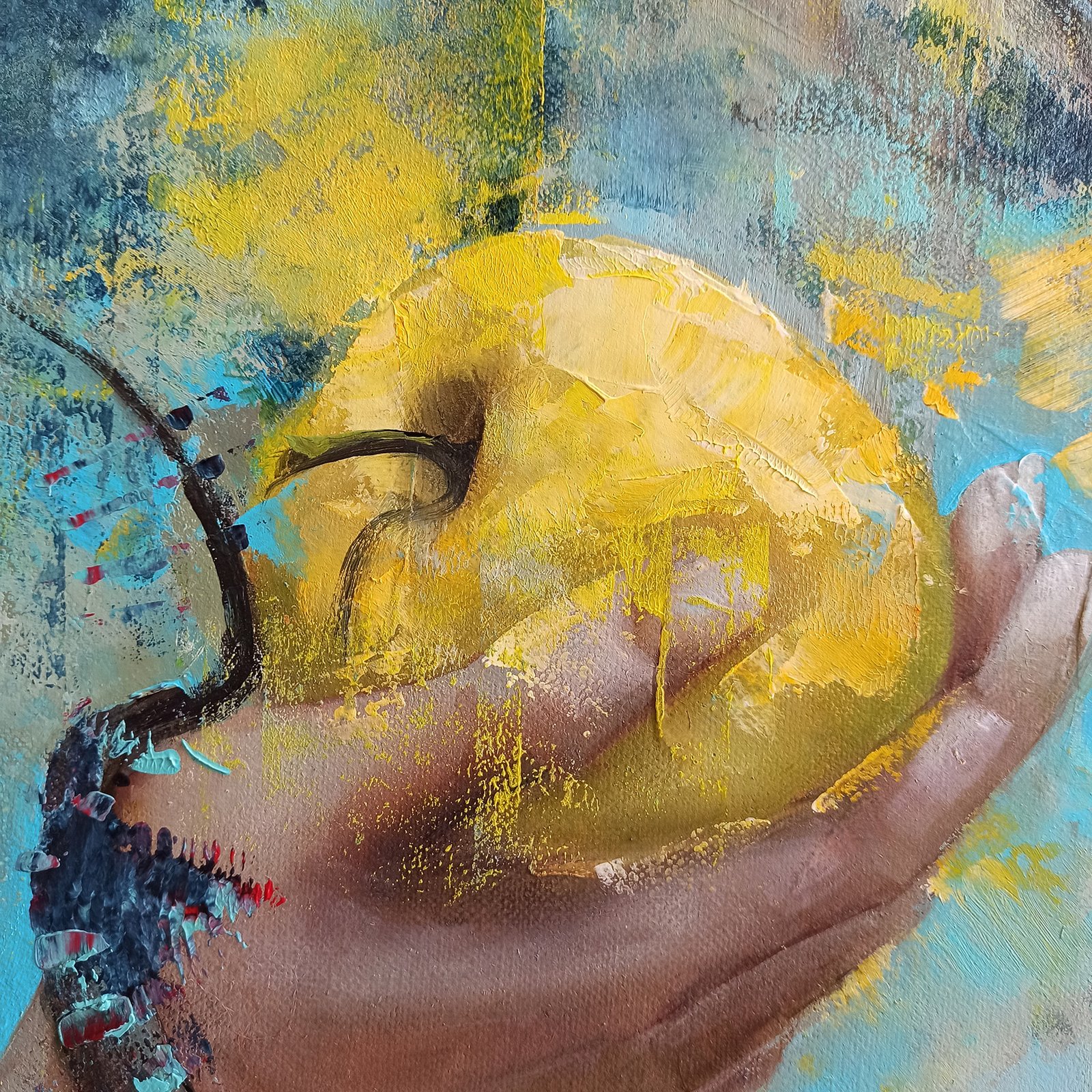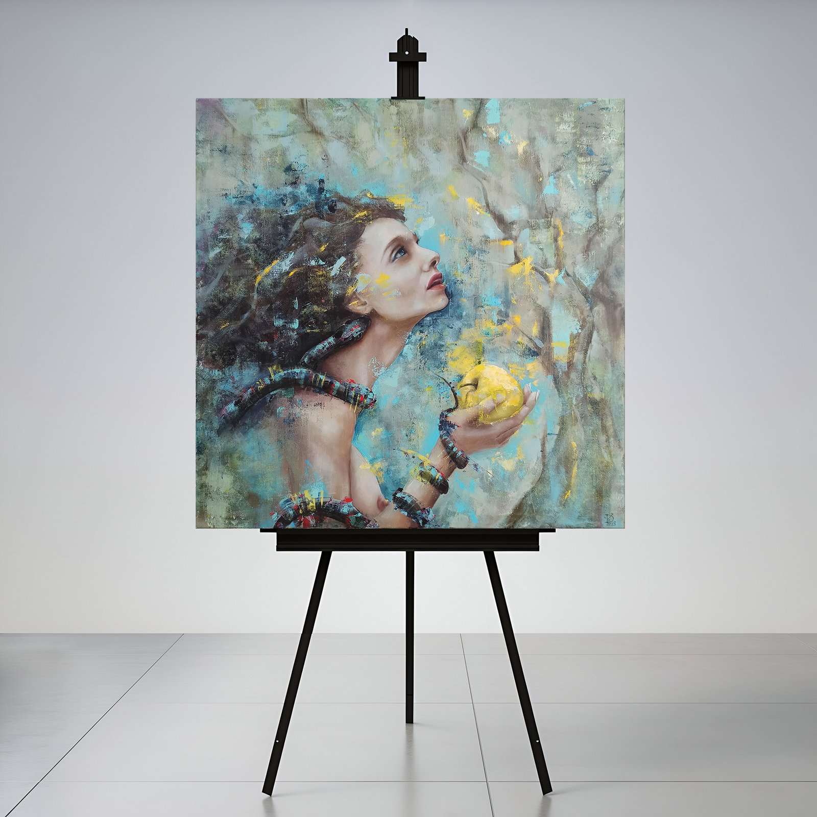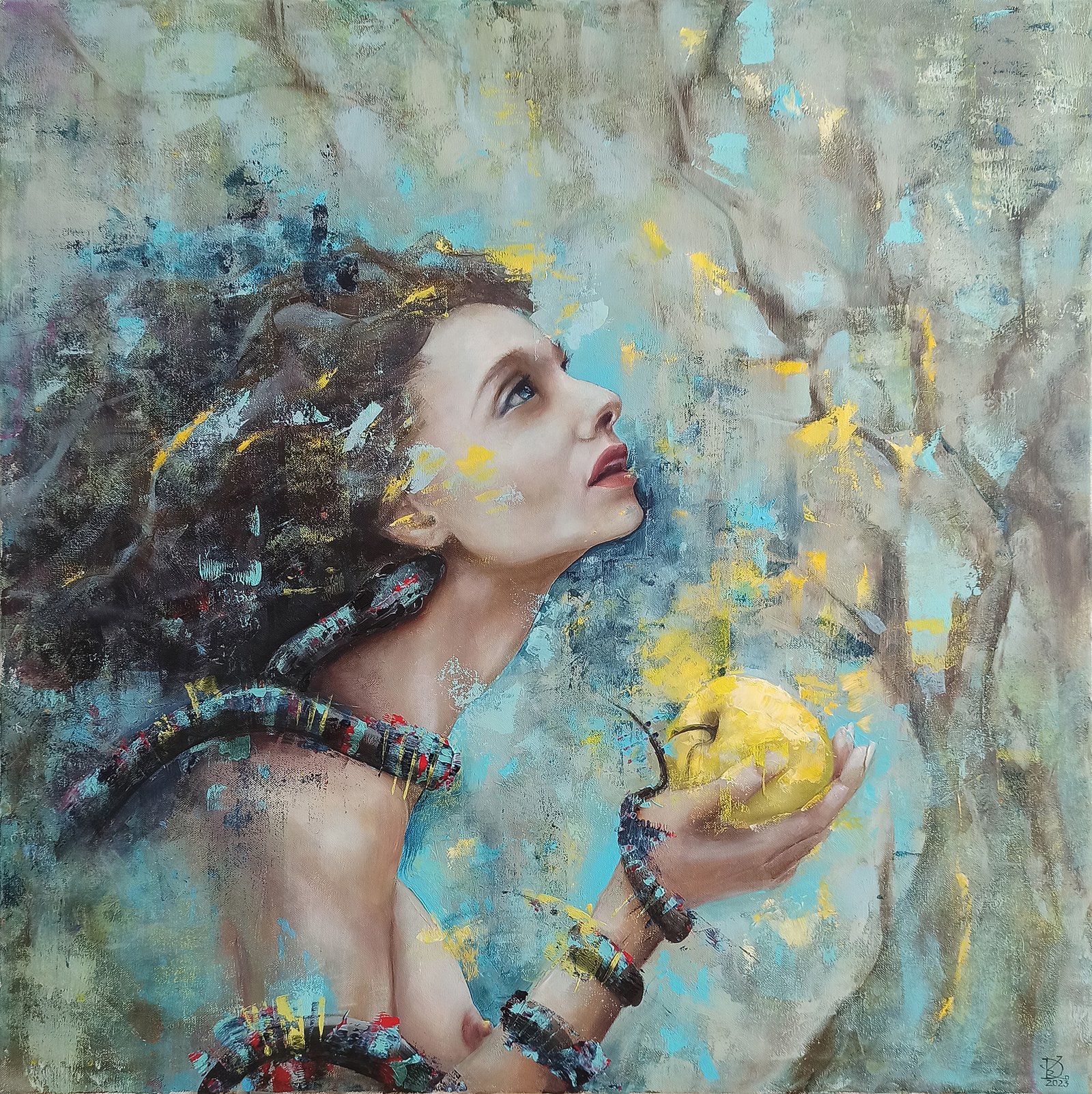 Paveikslas „IEVA”. Aliejus/akrilas, drobė, matmenys 80x80cm, porėmio storis (1,6cm), neįrėmintas. Paveikslas dalyvavo parodoje „Femina 2023”.
