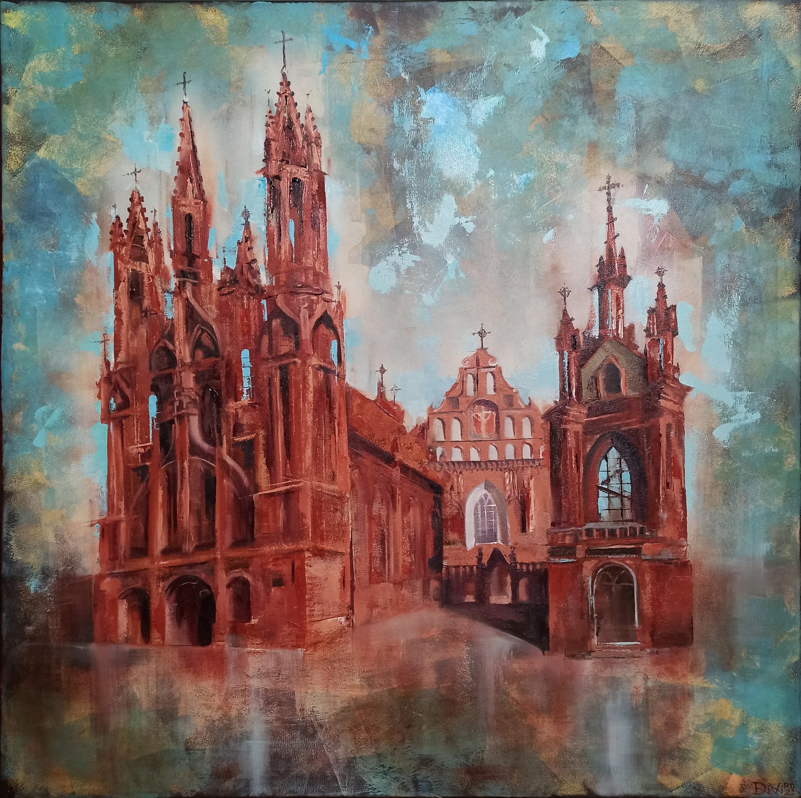 Originalus paveikslas ant drobės. Aliejus/akrilas, drobė, matmenys 80x80cm, porėmio storis (1,6cm). Neįrėmintas.
