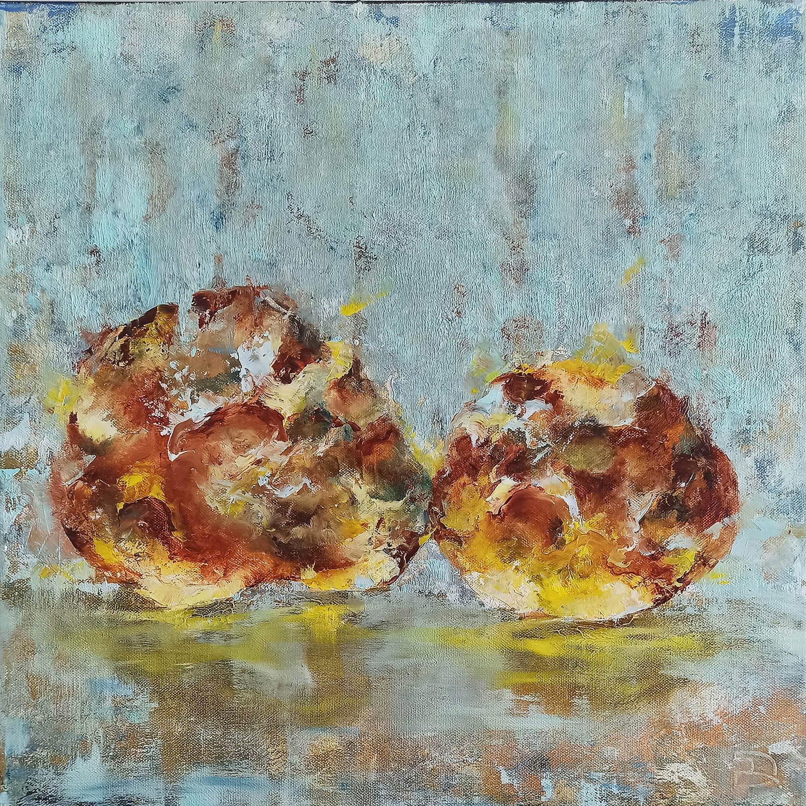 Paveikslas „PAJŪRIO PORELĖ” 2023m Daiva Rožukienė. Paveikslo matmenys 50cm/50cm 3,5 cm, medinis porėmis. Mišri technika: akrilas, aliejus.