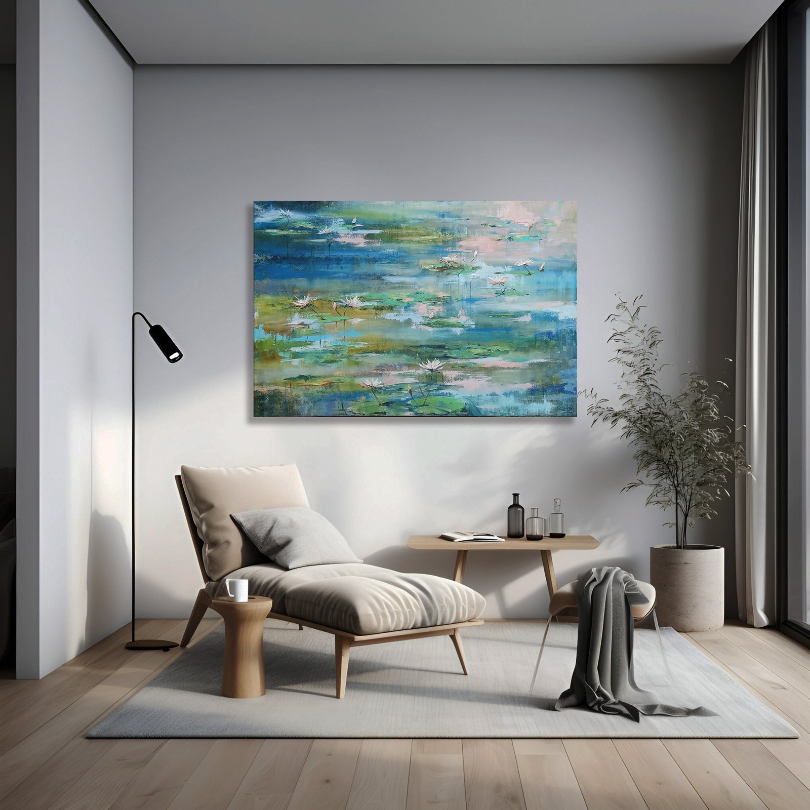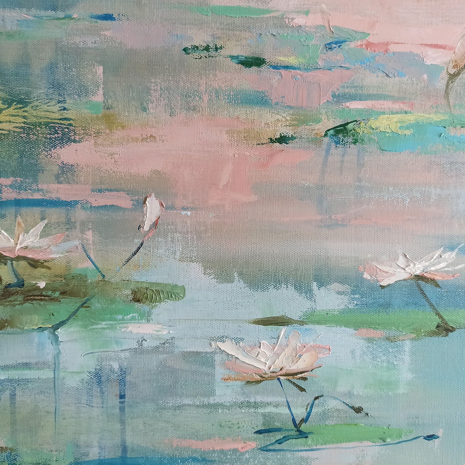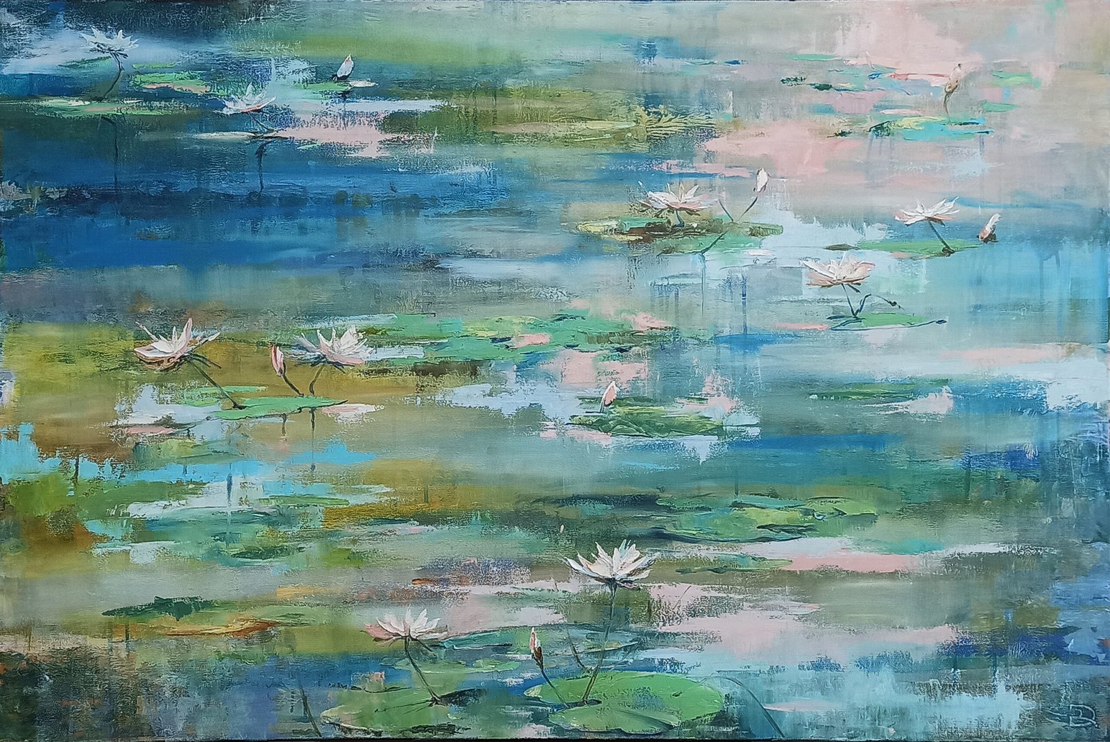 Didelio formato paveikslas „RYTO PASAKA”. Drobė ant porėmio 80x120cm akrilas/aliejus. Baltos vandens lelijos puikiai tiks: svetainei, miegamajam, grožio studijai, grožio salonui…