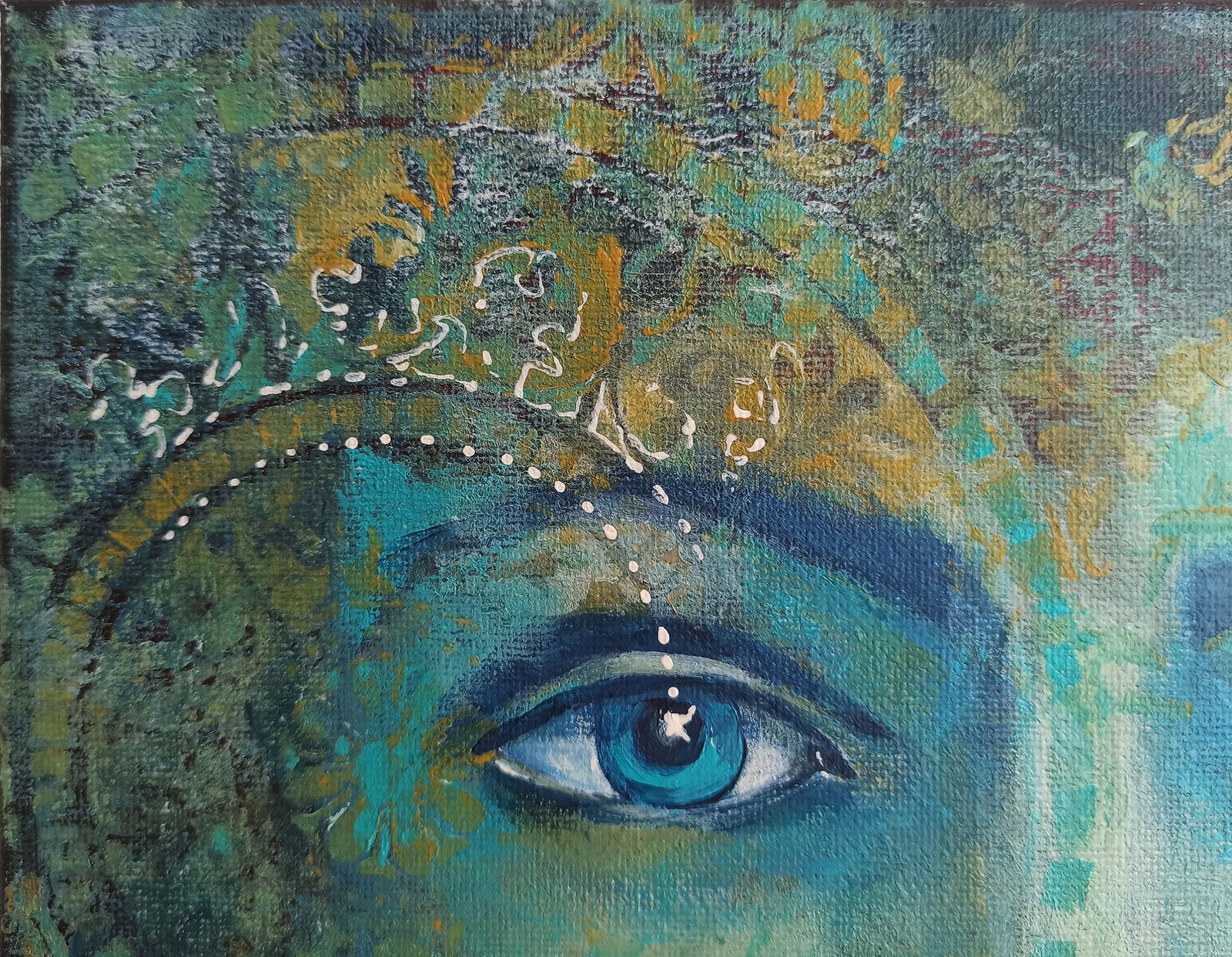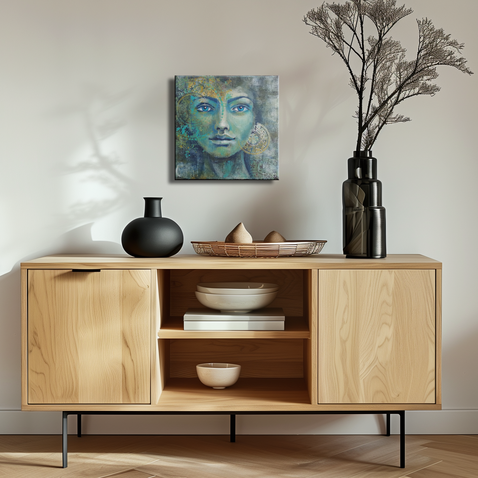 Tapyba ant drobės. Paveikslo matmenys 30x30cm, medinis porėmis 1,6cm. Galima kabinti neįrėmintą.