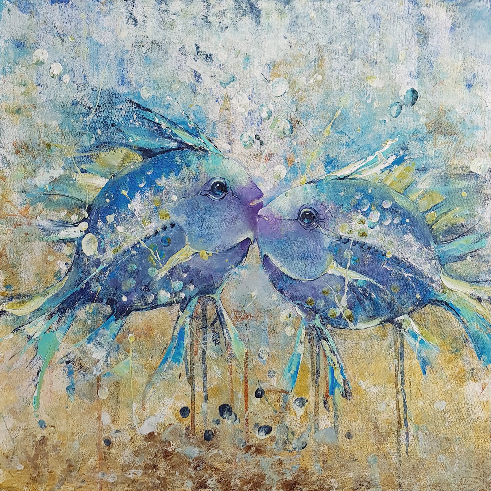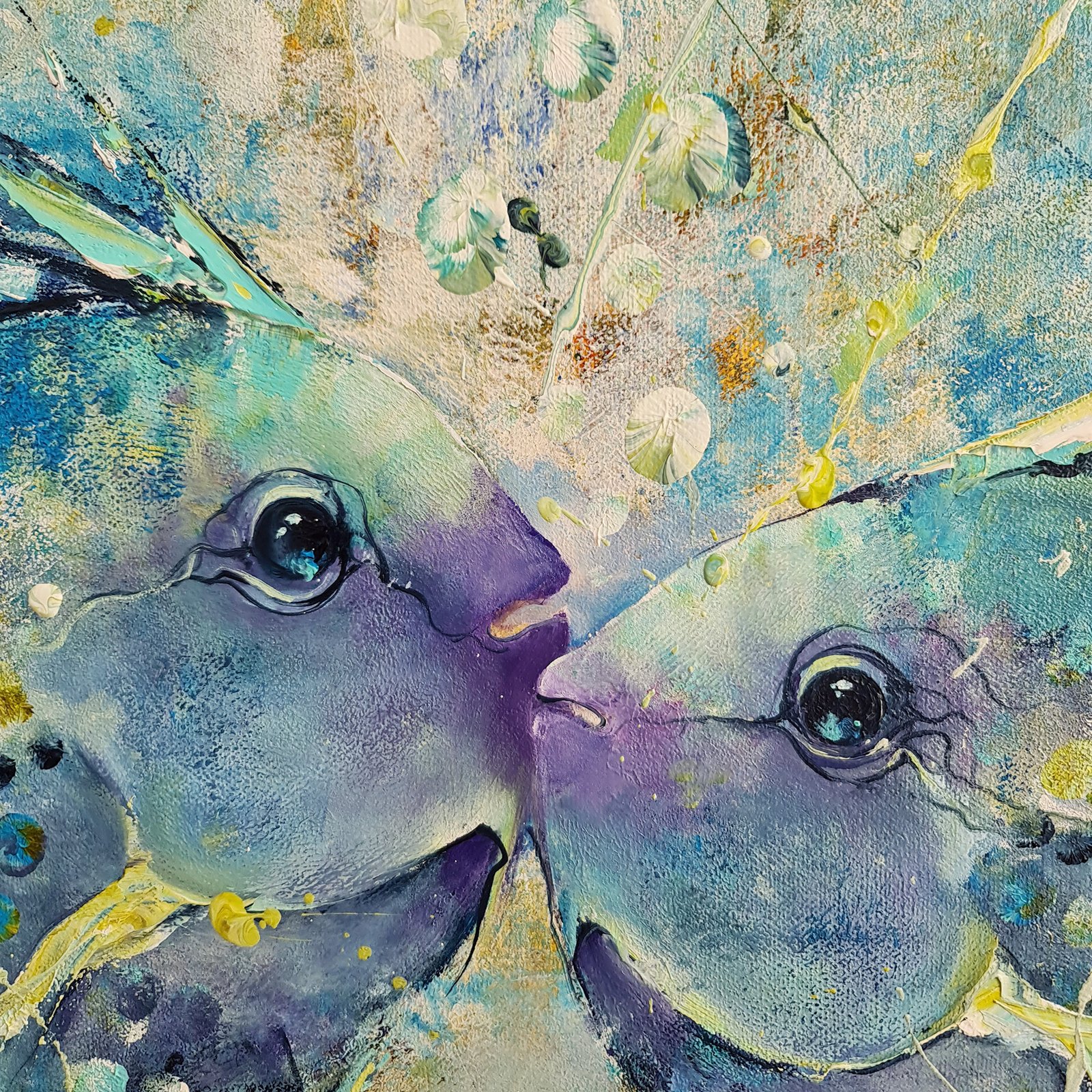Paveikslas „SPALVINGA PORELĖ” gera dovana porai. Šis paveikslas puikiai tiks papuošti svetainę, valgomąjį, miegamąjį. Paveikslo matmenys 60cm/60cm 1,6 cm, medinis porėmis. Mišri technika: akrilas, aliejus.