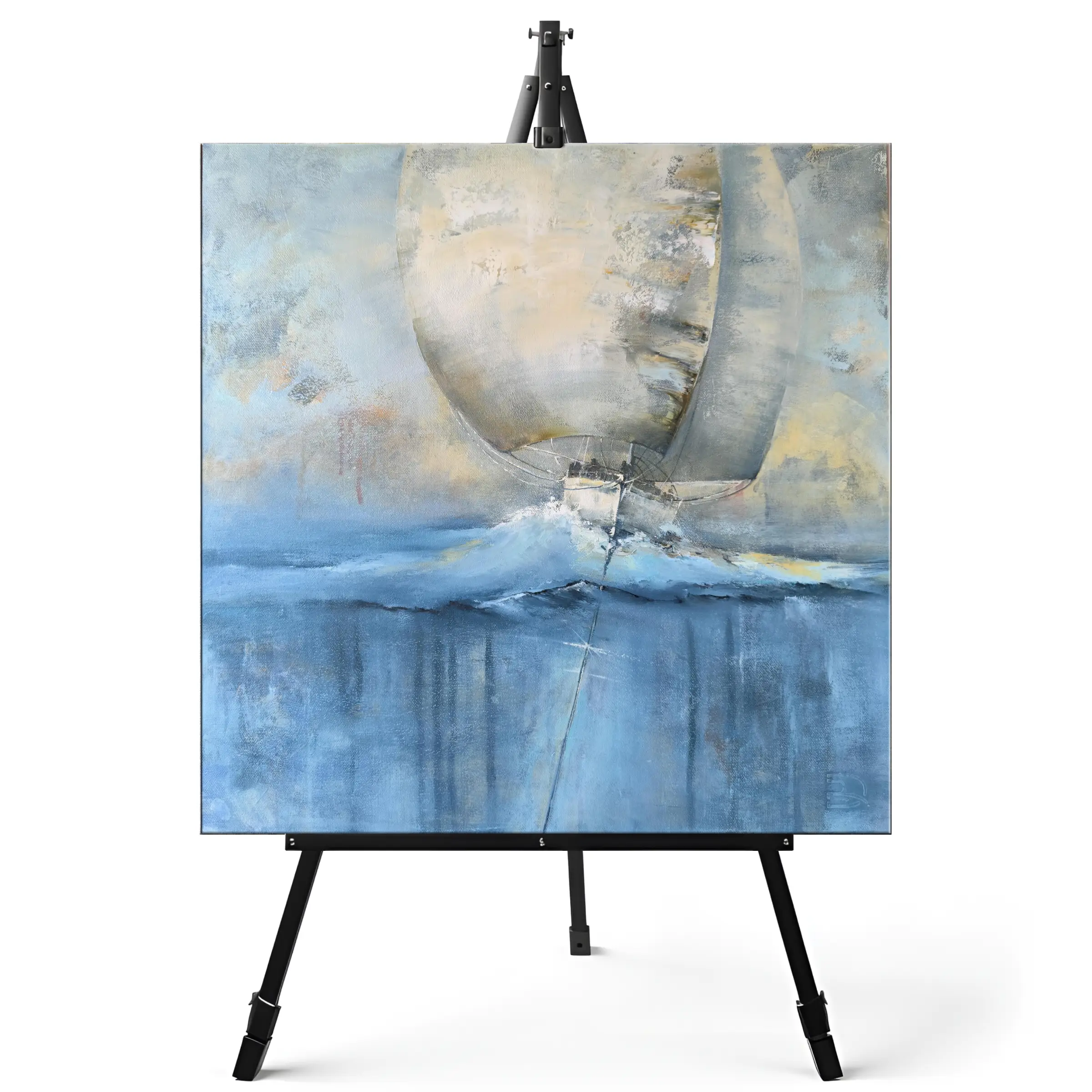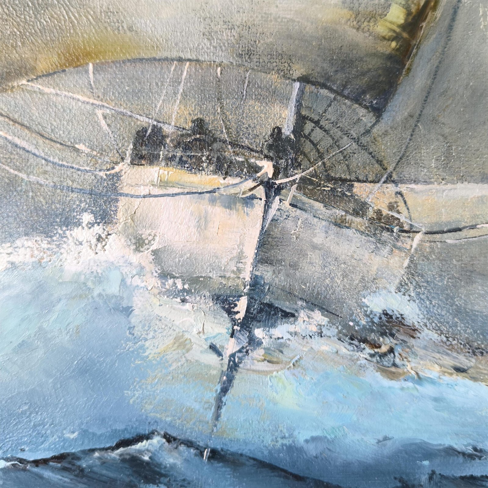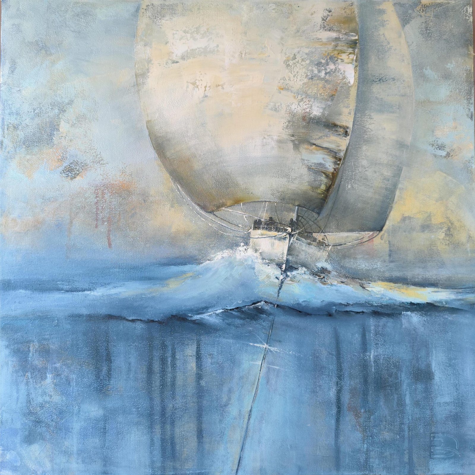Kūrinys jungia spalvų jėgą ir tekstūrų ekspresiją: burlaivis ant skaidrios bangos, kylis po vandeniu sujungia gelmes su dangumi. Tai paveikslas apie judėjimą, drąsą ir laisvę, kur potėpiai atkuria bangų ritmą ir kelionės jėgą pirmyn