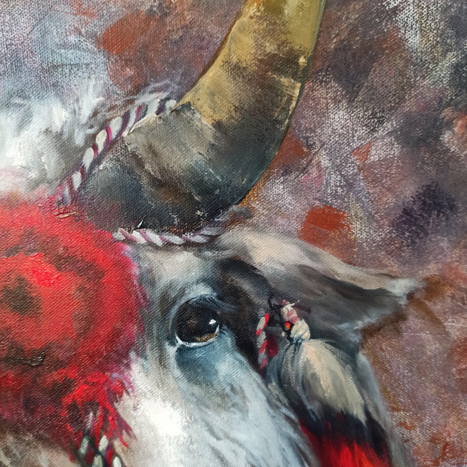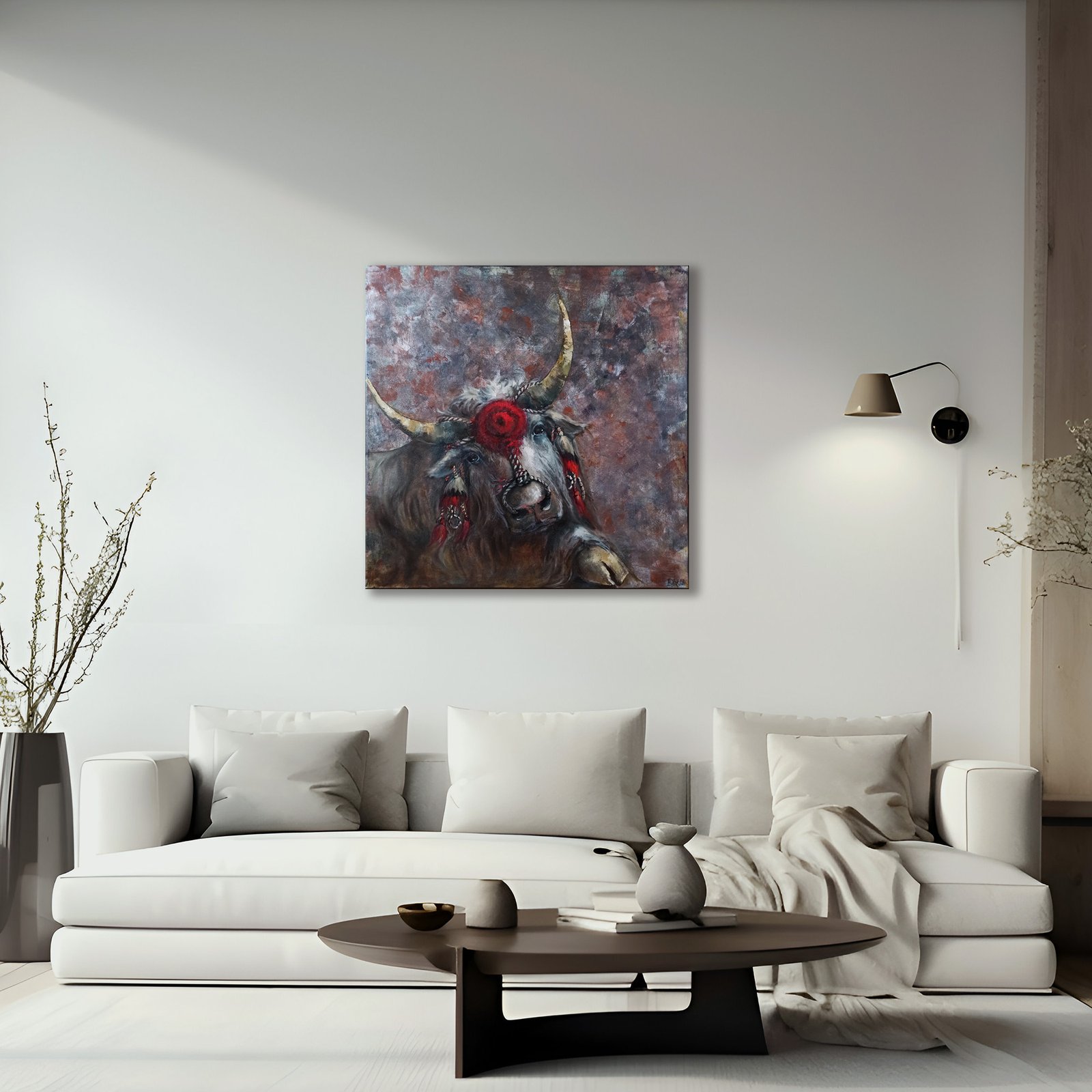 Paveikslas jautis (jakas) „TIBETO GRAŽUOLIS”. Šis paveikslas puikiai tiks papuošti svetainę, valgomąjį, miegamąjį, ofisą, sveikatingumo ar sporto salę.