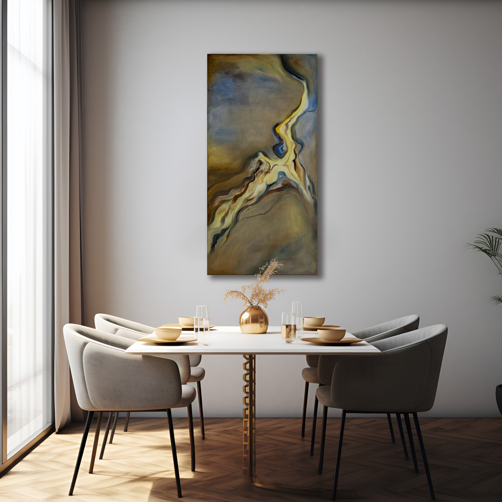 Mišri technika-akrilas/aliejus, drobė, matmenys 100x50cm, porėmio storis (1,6cm). Neįrėmintas. Galima kabinti neįrėmintą.