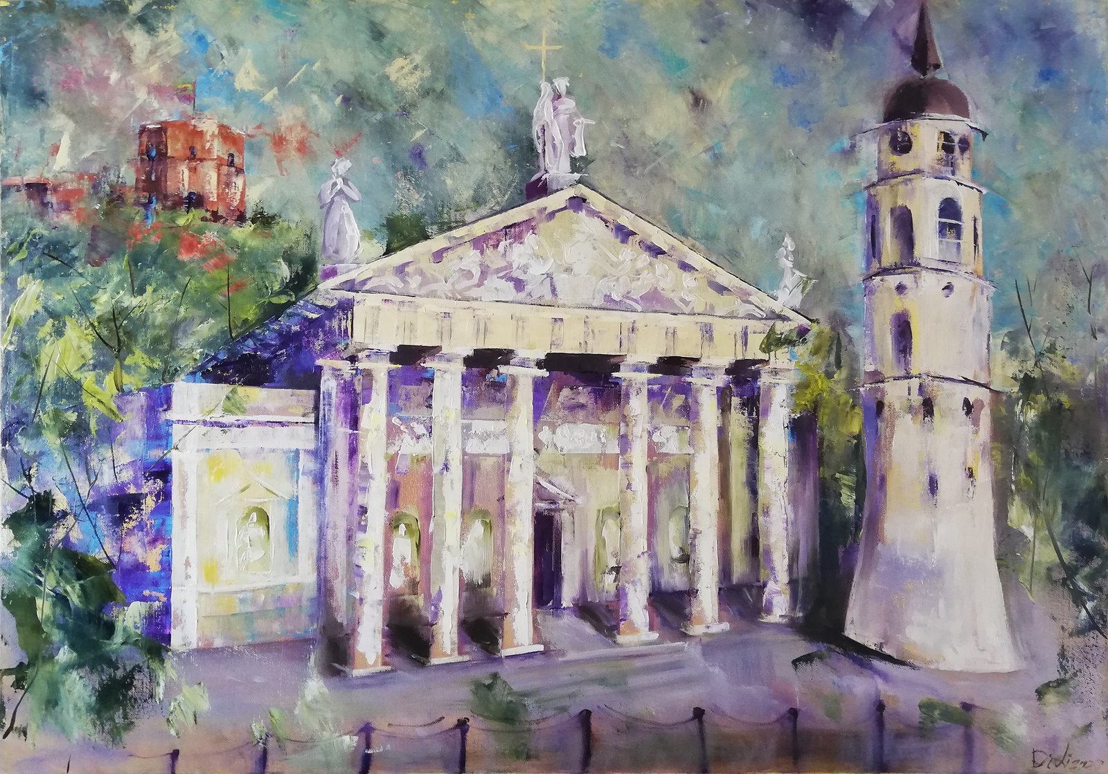 Originalus paveikslas ant drobės „VILNIAUS ŠIRDIS”. Aliejus/akrilas, drobė, matmenys 70x100cm, porėmio storis (1,6cm).