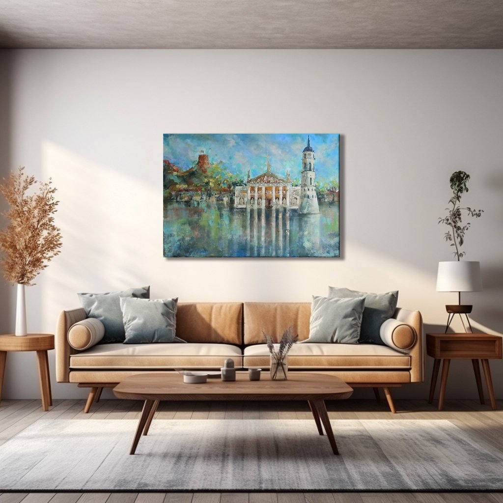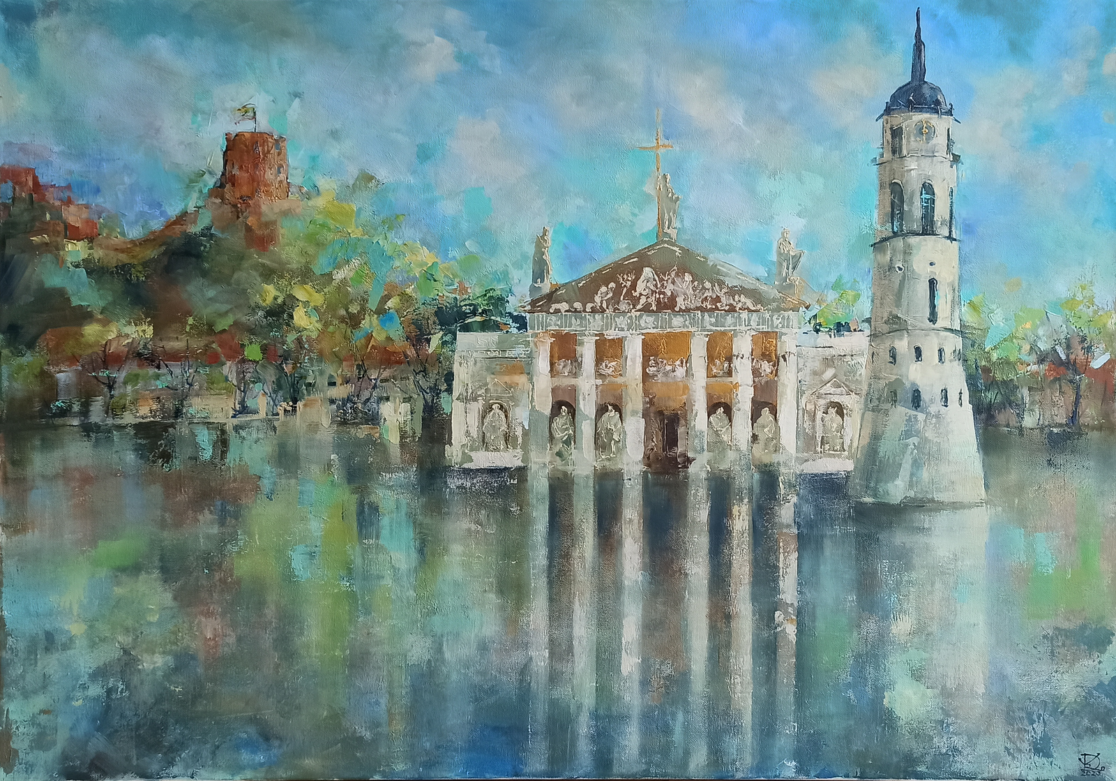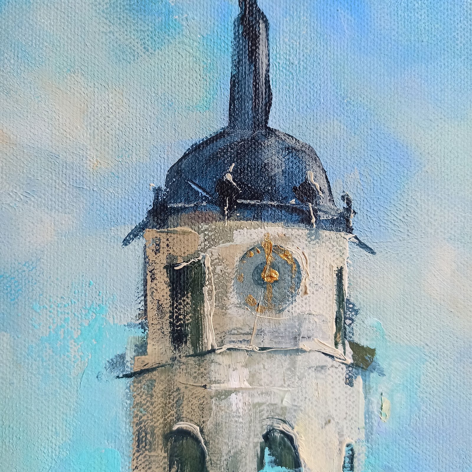 Originalus paveikslas ant drobės Vilniaus 700 metų jubiliejui. Aliejus/akrilas, drobė, matmenys 70x100cm, porėmio storis (1,6cm), neįrėmintas.